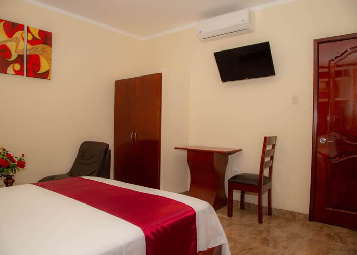 La Habitación Ejecutiva Premium del Hotel Naylamp Zyon ofrece un ambiente de lujo con detalles exclusivos. Equipadas con una cama king, estas habitaciones incluyen un área de trabajo ergonómica, wifi de alta velocidad, televisor de pantalla plana y minibar. Disfrute de un diseño sofisticado y servicios personalizados, ideales para una estancia productiva y placentera en Jaén.